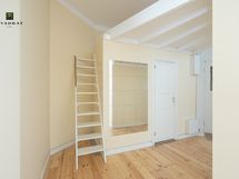 Asunnon pohjaratkaisu on toimiva ja tilantuntu erinomainen. Valoisa huone avautuu rauhalliselle sisäpihalle, ja korkea huonekorkeus luo ilmavan tunnelman. Parvi tuo käytännöllistä lisätilaa esimerkiksi nukkumiseen tai työskentelyyn. Keittiö on kompakti ja hyvin varusteltu arjen tarpeisiin.