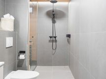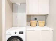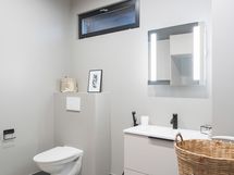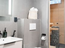 - Pesutilojen varusteet: WC-istuin (Seinämalli), lattialämmitys, peili, pesuallas, allaskaappi ja bidee-suihku. Erillisten WC:n lukumäärä: 1. Erillisen WC:n varusteet: WC-istuin (Seinämalli), pesukoneliitäntä, lattialämmitys, peili, pesuallas, allaskaappi, bidee-suihku ja lattiakaivo. Erillisen WC:n kuvaus: Erillinen wc ja kodinhoitohuone yhdistelmä asunnon toisessa kerroksessa.