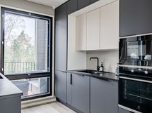 - Keittiön varusteet: Jääkaappipakastin (Integroitu), erillisuuni, mikroaaltouuni (Integroitu), astianpesukone (Integroitu), keittiösaareke ja liesituuletin (Integroitu induktio lieteen). Liesi: Induktioliesi. Työtason materiaali: Laminaatti.