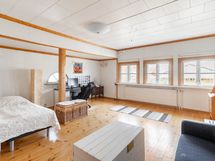 - Taloyhtiöön kuuluu: Asunto-osuuskunta omistaa yhden asuinhuoneiston 64 m2, vuokratuotto 1500 euroa/kk, työhuoneen 30 m2, vuokratuotto 575 euroa/kk ja varastotilan 18 m2, vuokratuotto 200 euroa/kk.