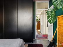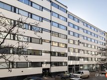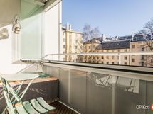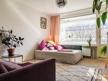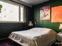 - Olohuone ja parveke etelään pihanäkymä. Keittiö ja makuuhuone Vaasankadun suuntaan.