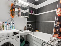 - Peilikaappi, allas, suihku, amme, wc-istuin, pyykinpesukoneliitäntä. Lattia: Muovi. Seinät: Maalattu