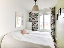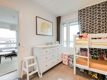 Asunnossa on kaksi makuuhuonetta, joissa on hyvin säilytystilaa. Tilavassa kylpyhuoneessa on oma pyykkikaappi sekä tila pesukoneelle ja muulle pyykkihuollolle. Taloyhtiössä asukkaiden käytössä on sauna ja kerhotila, jonka yhteydessä on pienimuotoinen mutta monipuolinen kuntosali.