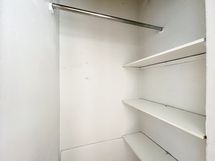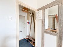 Eteisestä löytyy säilytystilaa, ja lisäksi tilava vaatekomero tuo reilusti lisää säilytysmahdollisuuksia.
