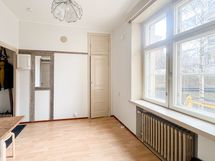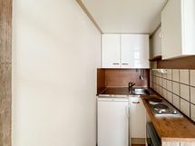 Asunnon pohjaratkaisu on selkeä ja avara. Keittokomero on sijoitettu sivuun ja tarjoaa kaiken tarvittavan arjen ruoanlaittoon. Kylpyhuone on yksiön kokoon nähden tilava ja toimiva. Lähellä Aleksis Kivenkadun S-marketissa sijaitsee erinomainen itsepalvelupesula.