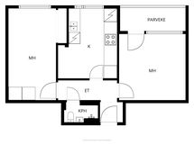 - Pesutilojen varusteet: WC-istuin, suihkuseinä, pesukoneliitäntä, peilikaappi, bidee-suihku ja seinäpatteri.