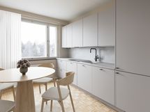 - Puustellin uusi keittiö, Paljon kaappitilaa, Laminaattitasot, Integroidut AEG koneet, Astianpesukone, Induktioliesi, Liesituuletin, Jää-pakastinkaappi, Integroitu mikro