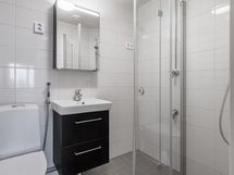 - Suihku, Suihkuseinä, Pesukonevalmius, Peilikaappi, Rättipatteri, Laattalattia