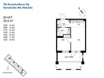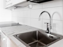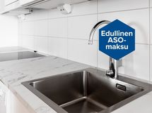 Hyvin suunniteltu toisen kerroksen pikkukaksio, jossa on kompaktista koosta huolimatta kaikki tarpeelliset arjen toiminnot. Avokeittiö yhdistyy saumattomasti oleskelutilaan, jossa on tilaa myös ruokailulle. Tyylikäs laminaattilattia tuo yhtenäistä ilmettä asuntoon, ja ikkunoissa on valmiina sälekaihtimet. Keittiössä on astianpesukone, keraaminen liesi sekä jääkaappipakastin. Tilava kylpyhuone on kauttaaltaan laatoitettu ja varustettu liitännöillä pyykinpesukoneelle ja kuivausrummulle. Eteisessä ja makuuhuoneessa on kaapistot tuomassa mukavasti säilytystilaa. Asuintilat jatkuvat olohuoneesta lähes asunnon levyiselle lasitetulle parvekkeelle.