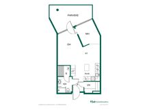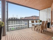 - sisään vedetty, lasitettu. Parvekkeen suunta: länsi, lounas