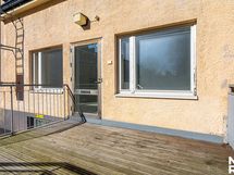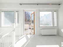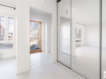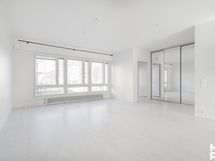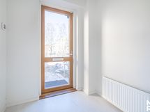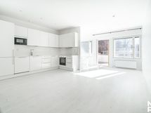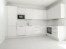 - Keittiö: Integroitu jääkaappi-pakastin, erillisuuni, keraaminen liesi, integroitu mikroaaltouuni, tasot laminaattia, seinät maalattu ja lattia laminaattia.