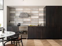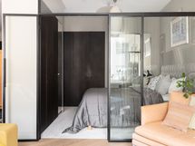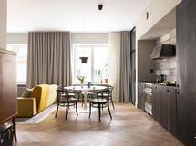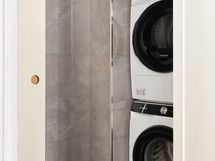 - Keittiössä integroitu jääkaappi-pakastin, astianpesukone, Smegin liesi ja uuni, sekä liesituuletin. Välitila laattaa ja kaapistot tammiviilua.