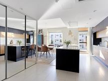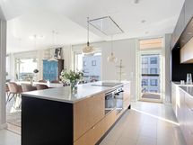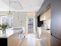 - Tammiviiluovelliset kaapistot, kvartsitasot, 2 x integroitu jääkaappi/pakastin, induktioliesitaso 70cm, erillisuuni, liesituuletin/aktiivihiilisuodatin, mikroaaltouuni, viinikaappi, integroitu astianpesukone, kiinteät valaisimet. Keittiö uusittu 2020. Mikro, astianpesukone ja induktioliesi 2025.