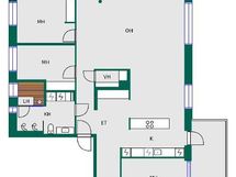 - 5-6h, avokeittiö/rt, kph/wc/sauna, kph/wc, vh, eteinen, 2 x las.terassi, avoterassi