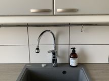 Tässä kolmannen kerroksen kodissa valo tulvii sisään kahdesta ilmansuunnasta, ja avarat näkymät tekevät asunnosta heti sisään tullessa neliöitään suuremman tuntuisen. Etelään ja länteen avautuvat ikkunat tuovat vuodenaikojen vaihtelun osaksi arkea – keväällä kirsikkapuiden kukinta, kesällä vehreys, syksyllä rauhallinen väriloisto ja talvella lempeä tunnelma.