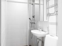 - Pesutilojen kuvaus: Yhtiön LVIS-remontin yhteydesssä uusittu hyväkuntoinen kylpyhuone. Kylpyhuoneen varastueina: WC-istuin, bidee-suihku,pesuallas, peilikaappi, vesikiertoinen kuivauspatteri, suihku ja suihkuseinä.