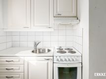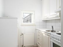 - Reilunkokoinen vaaaleasävyinen ikkunallinen keittokomero. Keittiön varusteina: Jääkaappi, liesi, liesituuletin. Lattiamareriaalina iso kaakelilaatta, mikä on helppo pitää puhtaana ja kestää kulutusta.