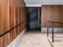 Omalla tontilla sijaitsevan rakennuksen autohallista pääsee hissillä suoraan kotiovelle.