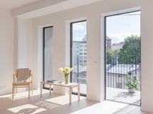 Rakennuksen kauniin puhdaslinjainen, paljon ikkunapintaa sisältävä julkisivu ja asuntojen lämmitysmuoto lattialämmityksellä tarjoavat ja mahdollistavat valtavan ikkunamäärän ja ikkunakorkeuden, joten valoisuus leimaa asuntoja kauttaaltaan.