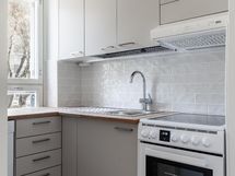 - Kaapistot, jääkaappi/pakastin, induktioliesi, kiertoilma uuni, liesituuletin aktiilihiilisuodatin, astianpesukone.