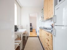 - Liesi: sähköliesi. Kylmäsäilytys: jääkaappi/pakastin. Varustus: liesituuletin. Läpikuljettava keittiö, ikkuna, astianpesukone liitäntä.