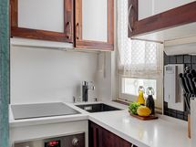 Keittiö on varusteltu nykyaikaisilla laitteilla, ja juuri remontoitu kylpyhuoneessa on kaikki tarvittavat mukavuudet. Asunnon lattiat ovat kaunista parkettia, mikä lisää tilan viihtyisyyttä. Taloyhtiössä on myös sauna, pesutupa ja kellarikomero, jotka tuovat lisämukavuutta asumiseen.