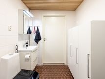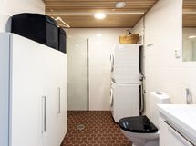 - Suihku, Suihkuseinä, Pesukonevalmius, Peilikaappi, Allaskaappi, Laattalattia, Laattaseinä