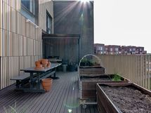- Valoisa, Korkeat huoneet, Korkeat ikkunat, Paljon ikkunoita, Kattoterassi, Sälekaihtimet