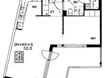 Toimivapohjainen 52 m²:n kaksio, jossa tilat on jaettu selkeästi arkea ajatellen. Asunnossa on oma keittiötila, avara olohuone sekä makuuhuone, joka sijoittuu rauhallisesti erilleen oleskelutiloista. Eteisessä on hyvin säilytystilaa ja kokonaisuuden kruunaa oma sauna. Pohjaratkaisu sopii monenlaisiin elämäntilanteisiin ja tarjoaa käytännölliset puitteet viihtyisään asumiseen.