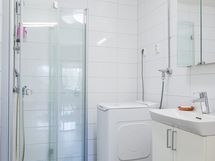 - Kylpyhuone kylpyhuoneessa wc-istuin, suihku, suihkuseinä, peilit, allaskaappi, pesukoneliitäntä, lattialämmitys sähköinen, kiinteät valaisimet. Rättipatteri vesikiertoinen