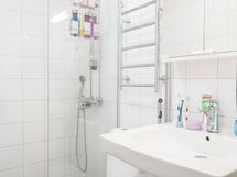- Pesutilojen varusteet: WC-istuin, suihku, suihkuseinä, pesukoneliitäntä, peilikaappi, pesuallas ja bidee-suihku.