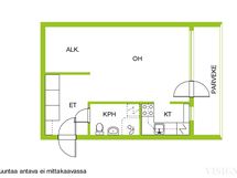 Olohuone on helppo kalustaa, ja tilava alkovi tarjoaa mainiot puitteet parisängylle. Tilaa voi myös jakaa kätevästi esimerkiksi verholla. Eteisessä on hyvin säilytystilaa, ja kaakeloidussa kylpyhuoneessa on valmiina pyykinpesukoneliitäntä.