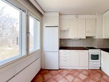 Erillinen keittiö tarjoaa hyvin tilaa ruokapöydälle, ja arkea helpottaa astianpesukone. Kylpyhuone on moderni ja hiljattain remontoitu. Pohjaratkaisu on käytännöllinen ja neliöt on hyödynnetty tehokkaasti.