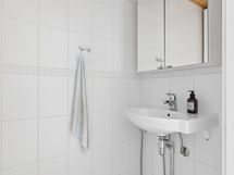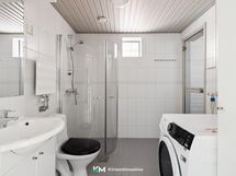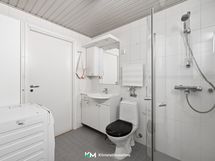 - Varusteet: suihku, suihkukaappi, peilikaappi, allaskaappi, WC, lattialämmitys. Ikkunallinen kylpyhuone, johon mahtuu pesutorni. WC: Kylpyhuoneessa myös wc-istuin. Varusteet: peilikaappi