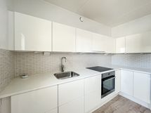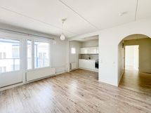 Tämän kodin pohjaratkaisu on toimiva, tilava ja avara. Sisään astuttaessa tila jakautuu luontevasti kahteen suuntaan: oikealle sijoittuu rauhallinen makuuhuone ja vasemmalle avautuu valoisa, tilava olohuone, joka yhdistyy saumattomasti keittiöön. Keittiö on uusittu vuonna 2012, ja samassa yhteydessä on päivitetty myös lattiat sekä maalattu pinnat, mikä luo siistin ja yhtenäisen ilmeen koko asuntoon.