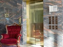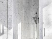 Kaikki talon kylpytilat noudattavat yhtenäistä linjaa: Tilaa on runsaasti, lattiat ja seinät ovat marmoria.