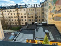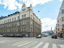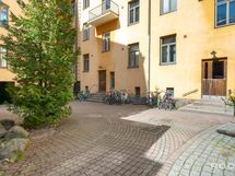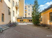 Asunto sekä yksi myymälähuoneisto 32 m2, piharakennuksessa ja kellarikerroksessa olevat varastot 228 m2, työhuone 45 m2, lämmönjakohuone 24 m2, pyöräsuojat 26 m2 ja työkalusuoja.
