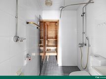 - Kylpyhuone, suihku, sähkösauna, pesukoneliitäntä, peili, kiinteät valaisimet. Kylpyhuone ja sauna uusittu noin 3v sitten kokonaisuudessaan.