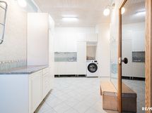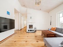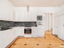 Talon sydämessä on tilava olohuone, joka yhdistyy saumattomasti keittiöön ja ruokailutilaan, luoden avaran ja kodikkaan kokonaisuuden. Lämpöä ja tunnelmaa tuo varaava takka. Keittiö on varusteltu nykyaikaisilla kodinkoneilla, ja sieltä löytyy kaikki tarvittava.