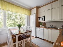 - Jääkaappipakastin, erillisuuni, keraaminen liesi, liesituuletin, astianpesukone, kaapistot, kiinteät valaisimet.