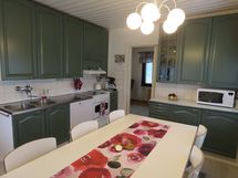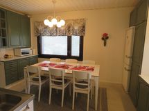 - Sähköliesi, Liesituuletin, Astianpesukone, Jää-pakastinkaappi, Laminaattitasot, kylmiö (kellarikerroksessa)