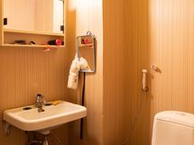 - Pesutilojen varusteet: Suihku, pesuallas, peilikaappi ja pesukoneliitäntä. Pesutilojen kuvaus: Pesuhuone remontoitu v. 2000. Erillisten WC:n lukumäärä: 2. Erillisen WC:n varusteet: WC-istuin, peilikaappi, peili, pesuallas ja bidee-suihku.