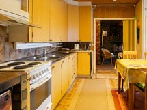 - Keittiön varusteet: Liesi, leivinuuni ja liesituuletin. Liesi: Valurautaliesi. Työtason materiaali: Laminaatti. Talon kylmälaite (kylmiö) sijaitsee keittiön viereisessä käytävässä.