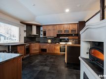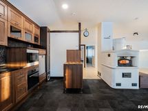 - Leivinuuni, jääkaappi, pakastin, keraaminen liesi, kiertoilmauuni, integroitu mikro, astianpesukone, liesituuletin hormilla, viinikaappi, osin kivitasot.