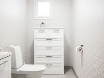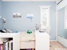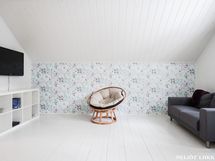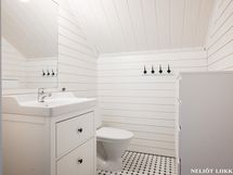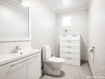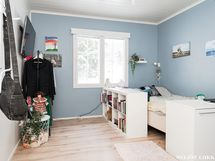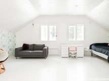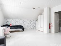 Yläkerrassa sijaitsee kaksi reilunkokoista makuuhuonetta, vaatehuone, aulatila sekä erillinen wc. Yläkerran toinen makuuhuone on mahdollista jakaa kahdeksi makuuhuoneeksi väliseinällä.