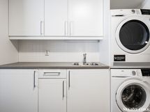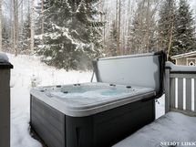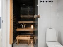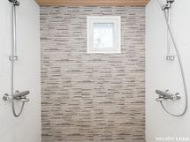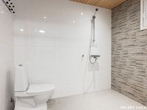 Alakerrasta löytyy kaksi makuuhuonetta, erillinen wc, vaatehuone sekä tilava kodinhoitohuone, josta on suora käynti terassille ja porealtaalle. Kylpyhuoneessa on kaksi suihkua ja wc. Sauna on heti valmis nautittavaksi ja lisäksi saunaan ja porealtaalle on asennettu äänentoistojärjestelmä, joka kruunaa rentoutumishetket.