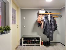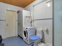 - Pesutilojen varusteet: Suihku, lattialämmitys (vesikiertoinen), wc-istuin, allaskaappi, suihkuseinä ja pesukoneliitäntä.