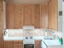 Paljon kaappitilaa, Laminaattitasot, Halogeenivalot, Astianpesukone, Sähköliesi, Liesituuletin, Jääkaappi
