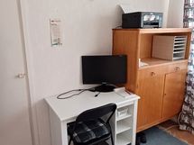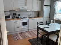 Paljon kaappitilaa, Laminaattitasot, Pesukoneliitos, Keraaminen liesi, Liesituuletin, Jääkaappi