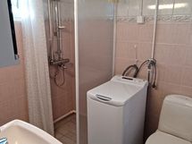 Suihku, Suihkuseinä, Pesukone, Peilikaappi, Laattalattia, Laattaseinä, Avattava ikkuna